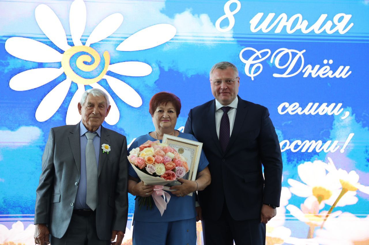 Кроме того, отметили семью Жилиных из Черноярского округа, проживших в браке 38 лет и воспитавших сыновей-героев. Один из них погиб на СВО, посмертно награжден орденом Мужества. Мать героев, Валентина, организовала группу волонтеров, помогающих участникам спецоперации.