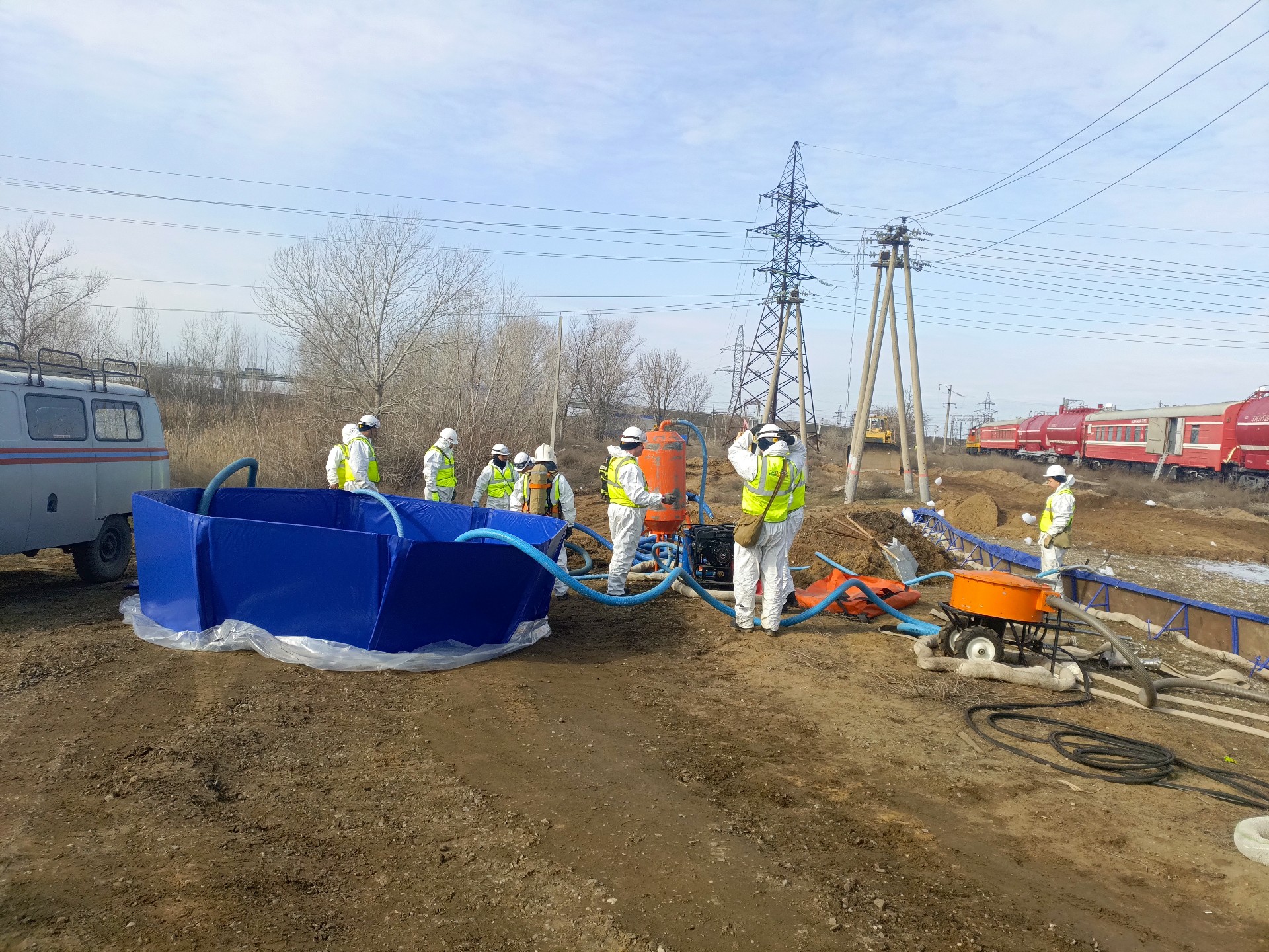Свыше 50 специалистов ликвидировали разлив мазута в реку на учениях в Астрахани