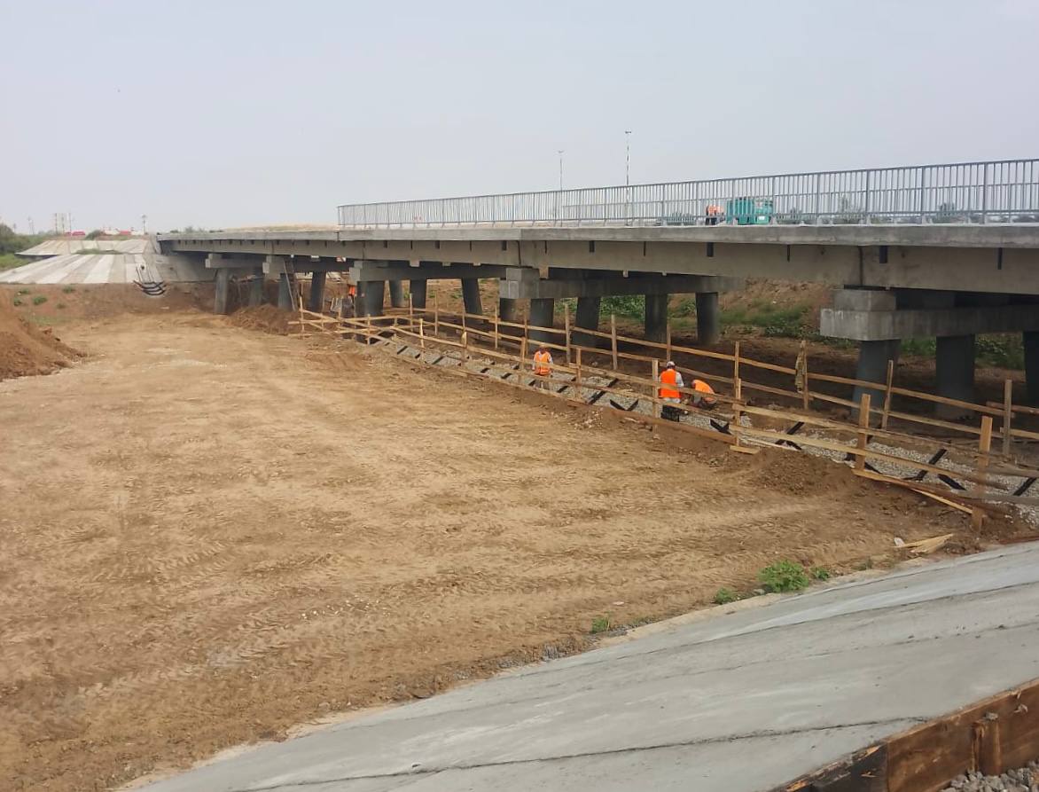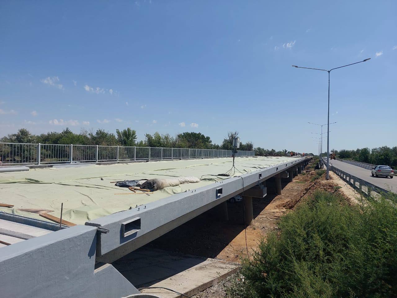 На втором мосту, через ерик Кушумбет, также меняют пролетное строение, мостовое полотно и ригели опор. Помимо этого, укрепляют дамбы, устанавливают ограждения и переустраивают кабель связи. Готовность этого объекта составляет 31%.