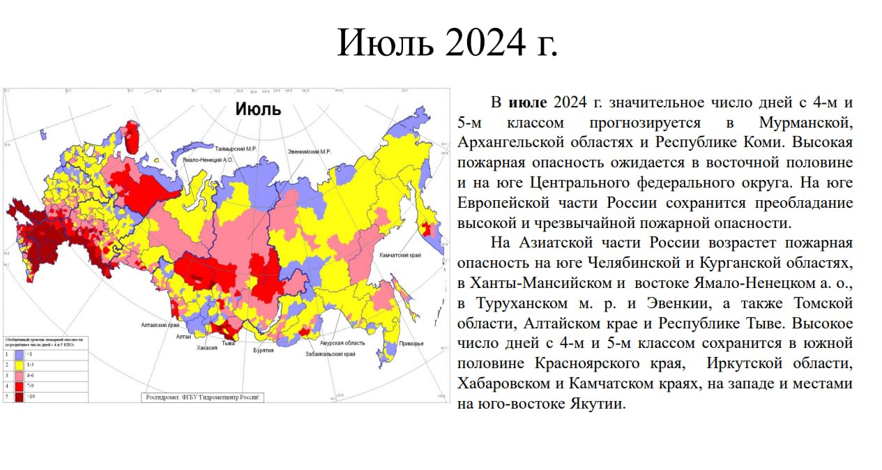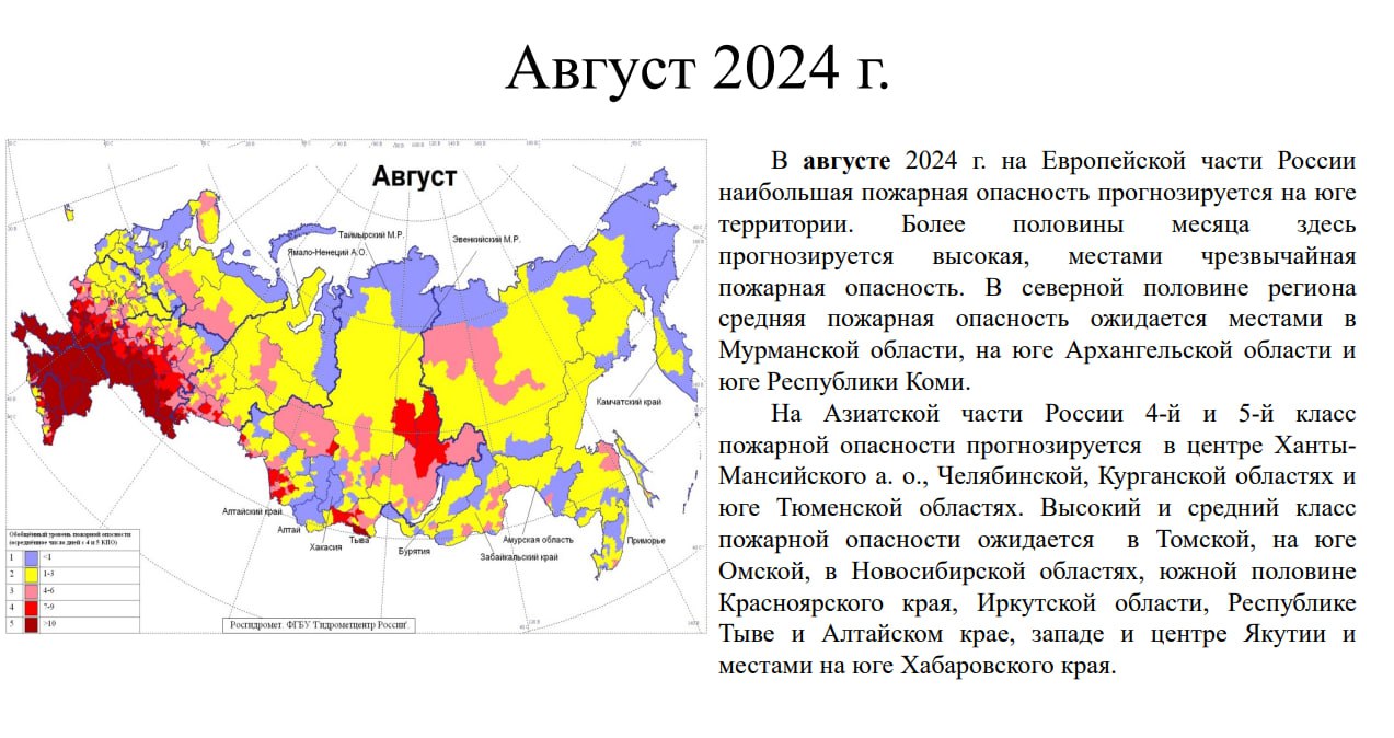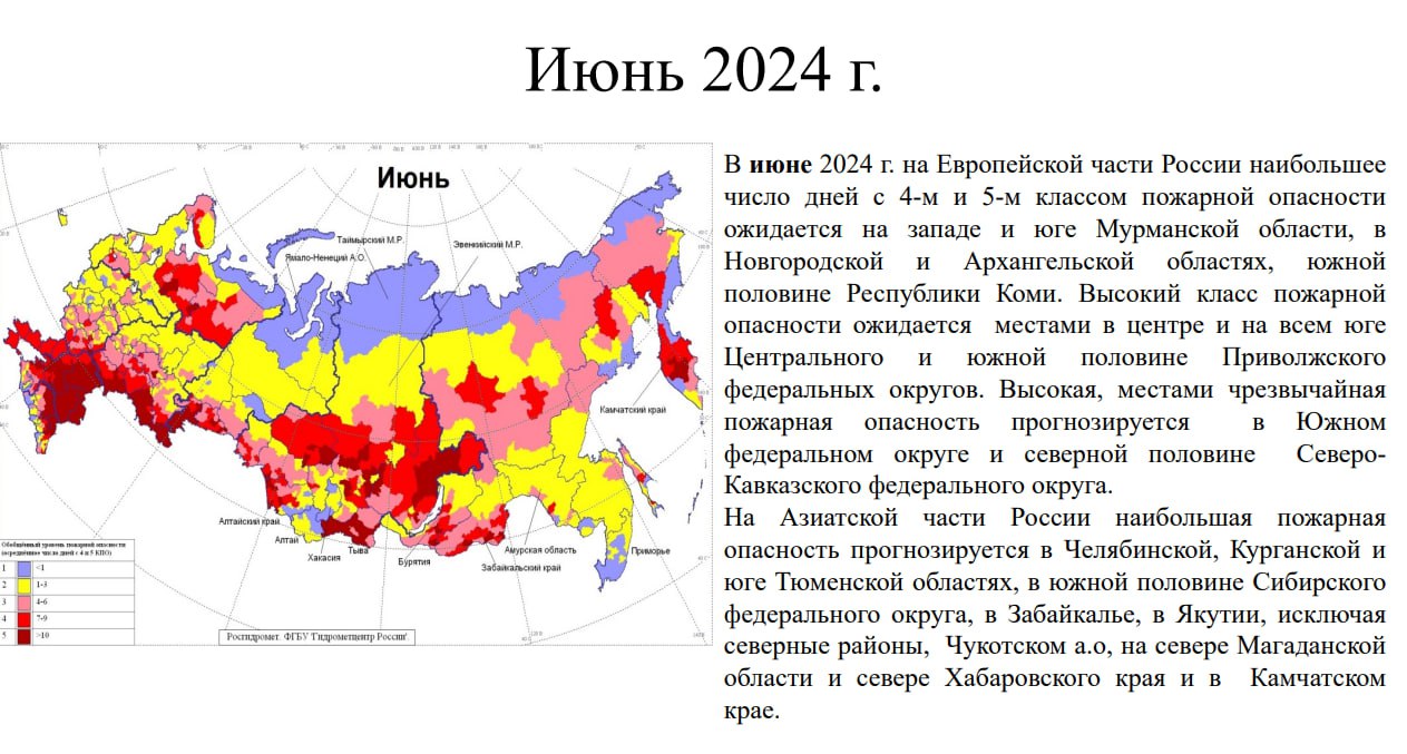 возможна увеличенная повторяемость пожаров — 10 и более дней в месяц.