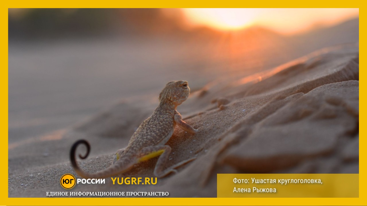 Начнем с того, что чем дальше от Волги, тем более пустынным становится пейзаж. В условиях знойного климата с малым количеством воды большинство представителей животного мира ведет сумеречный образ жизни. Но однажды нашему фотографу повезло сфотографировать прямо на бархане редкую красавицу – ящерицу ушастую круглоголовку. Съемки этой рептилии стали поводом для разговора об этике фотографов-натуралистов. Эксперты отмечают, что на фото ящериц мы часто видим их с широко открытым ртом.