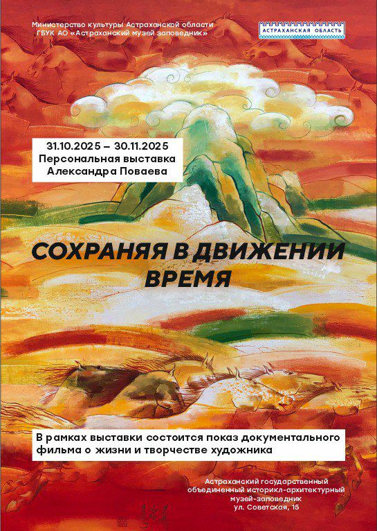 Астраханский государственный объединенный историко-архитектурный музей-заповедник готовится представить уникальную выставку народного художника Калмыкии Александра Поваева, чьи работы гармонично переплетают восточные и западные традиции. Открытие выставки состоится 31 октября в 14:00 и продлится до 30 ноября.