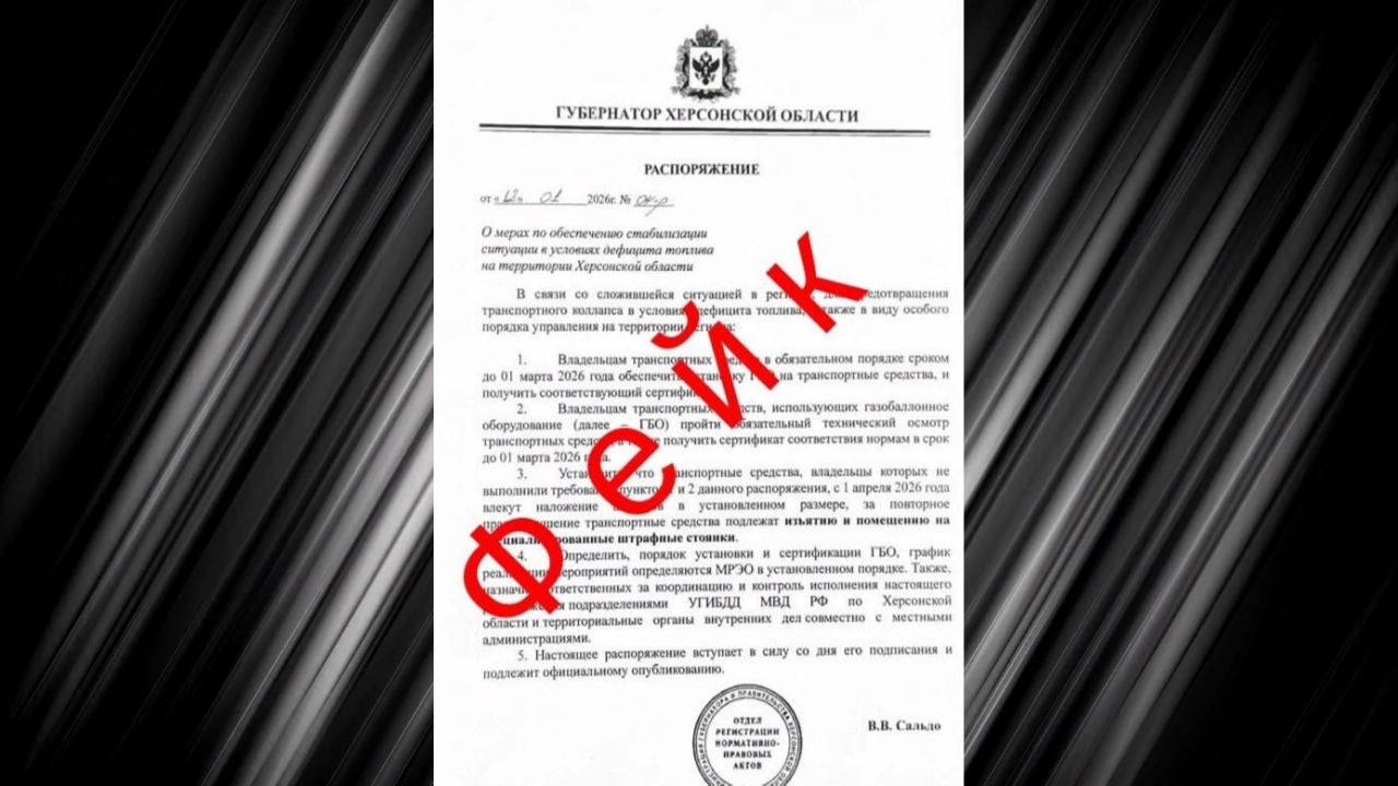 Губернатор Херсонской области Владимир Сальдо решительно опроверг дезинформацию, распространяемую украинским ЦИПСО, о якобы обязательной установке газобаллонного оборудования (ГБО) на автомобили из-за дефицита топлива в регионе.