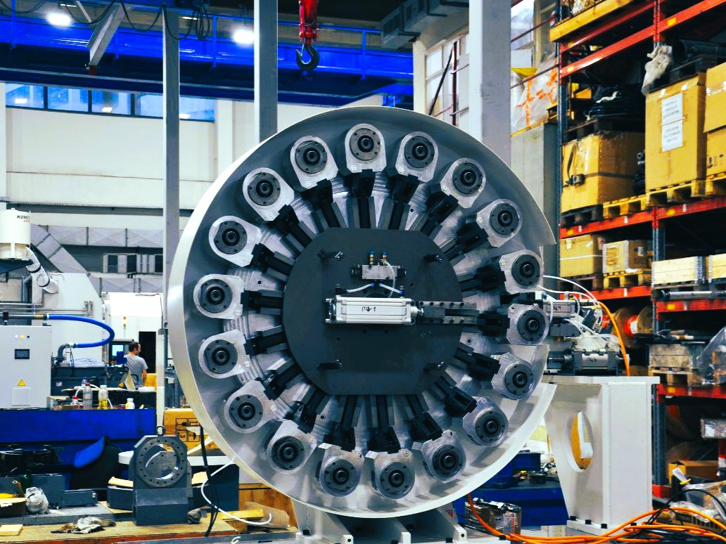 Ключевая особенность нового устройства — возможность работы с тяжелыми шлифовальными кругами в сборе с оправкой массой до 60 кг. Магазин рассчитан на 18 позиций и обеспечивает их автоматическую установку в шпиндель станка. При его создании использовали преимущественно российские компоненты, а многие детали изготовили на самом предприятии. Кроме того, программное обеспечение для управления системой специалисты компании написали с нуля и интегрировали в ЧПУ станка.