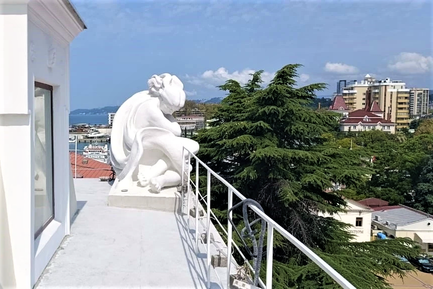 Ансамбль морского пассажирского вокзала, построенный в период с 1951 по 1955 год, является одним из главных символов Сочи, демонстрирующим стиль сталинской неоклассики. Проект академика архитектуры Каро Алабяна, архитектора Льва Карлика и инженера Александра Кузьмина победил на всесоюзном конкурсе в 1947 году. Скульптор Владимир Ингал создал декоративные фигуры, украсившие ярусы башни: женские фигуры, символизирующие времена года, мужские аллегории сторон света и двенадцать дельфинов на самом верху. Шпиль, увенчанный орденом Великой Отечественной войны, был установлен в 1954 году и стал завершающим штрихом этого архитектурного шедевра.